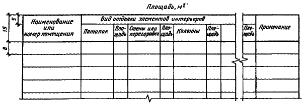 1. Количество граф определяется наличием элементов интерьера, подлежащих отделке.