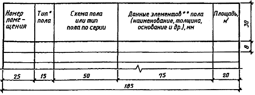 ** При применении типовой конструкции пола приводят только дополнительные данные.