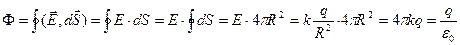 Мы видим, что поток не зависит от радиуса сферы. И это напрямую связано с законом обратных квадратов для электрического взаимодействия.
