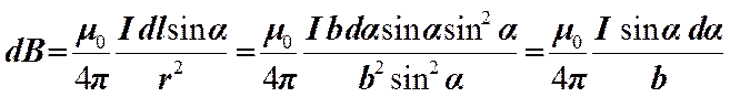 Пусть имеется тонкий, прямой, бесконечно протяженный проводник, по которому течет ток Упростим эту формулу, выразив входящие в нее величины через один переменный параметр – угол