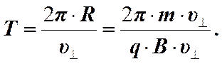 Отношение заряда к массе (q/m) называется удельным зарядом. Найдём время одного оборота (период) T. Для этого нужно разделить длину окружности 2pR на v^ (скорость вращения заряда).