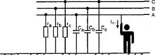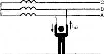 Прикосновение к одному из фазных проводов (однофазное прикосновение) при С =-0