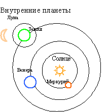 Сначала я перечислю планеты в порядке удаления их от Солнца: Меркурий, Венера, Луна, Марс, Юпитер, Сатурн, Уран, Нептун, Плутон. Между Сатурном и Ураном есть астероиды, работа с которыми в этом курсе рассматриваться не будет и Хирон, о котором будет сказано позже. Луна вращается исключительно вокруг Земли. Для Земного наблюдателя она совершает полный оборот по своей орбите за 28,5 дней. Далее движение любой планеты будет рассматриваться с точки зрения Земного наблюдателя. Знание периодов обращения планет очень важно, так как часто бывает, что некоторая ситуация от своего начала и до конца развивается количество дней или лет равное периоду планеты. Кроме того, в астрологии используется скорость планеты. Самая быстрая планета Меркурий и светило Луна, а самая медленная Плутон. Особенно это касается быстрых планет, которые меньше, чем за один год завершают полный цикл своего обращения вокруг Солнца. Напоминаю, что Луна, относясь к ночному светилу, вращается вокруг Земли, то, входя в ее тень, то, выходя из нее. Она самая быстрая в Солнечной системе, что означает связь с ней всех быстро зарождающихся, развивающихся и теряющих свою значимость ситуаций. Например, это человеческие эмоции, связанные с отношениями людей. Могу так же сказать, что адаптация человека к изменившимся условиям то же связана с Луной. Но происходит она часто в моменты, отмеченными четвертями цикла обращения Луны. Мало того, завершающая фаза ситуаций часто совпадает с моментами, когда Луна заканчивает формирование очередной четверти своего цикла обращения. Так называемые моменты материализации, когда скрытое, может стать явным. В эти моменты становится ясно, что Вас обманывали или, например, некоторая болезнь переходит в свою решающую фазу проявления или исцеления. Но надо сказать, что для разговора о болезни мало одних положений Луны. Важно еще рассматривать движение других планет. Ведь к болезням часто приводит проявление нашего несовершенства. Так не маловажно движение двух других внутренних планет Венеры и Меркурия.