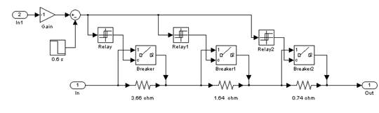 Исследуем процесс пуска при использовании вместо реле времени (таймеров) реле тока. Для этого организуем обратную связь по току (рис.7,8).