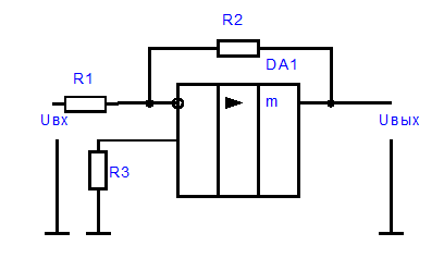 вход ОУ, а его неинвертирующий вход заземлен Рисунок 4.3 – Схема инвертирующего усилителя