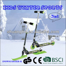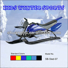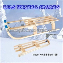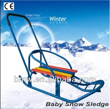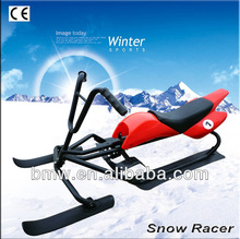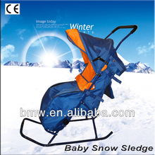 Нажатием рычага санки встают на колеса и могут ехать по дороге, где нет снега.