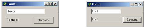 Рис. 1.12. Форма и окна программы Таймер Рис. 1.13. Форма программы Таймер 1.14. Текст, введенный в Edit должен появиться в надписи (tLabel). 1.15. Каждый из экземпляров tEdit должен при получении фокуса изменять цвет фона, а при потере – восстанавливать первоначальный.