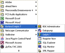 Запускается Delphi обычным образом, т.е. выбором из меню Borland Delphi 7 команды Delphi 7 (рис. 1).