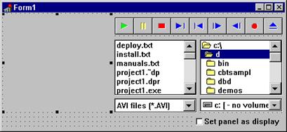 В данной главе мы рассмотрим пример построения приложения с мультимедиа первого типа. Создайте новый проект (File | New Project). Поместите TMediaPlayer на форму; поместите компоненты TFileListBox, TDirectoryListBox, TDriveComboBox, TFilterComboBox для выбора файла. В свойстве FileList для DirectoryListBox1 и FilterComboBox1 поставьте FileListBox1.