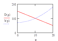 Равновесная цена p =10. Проверим вычисление равновесной цены, подставив ее в обе части уравнения.