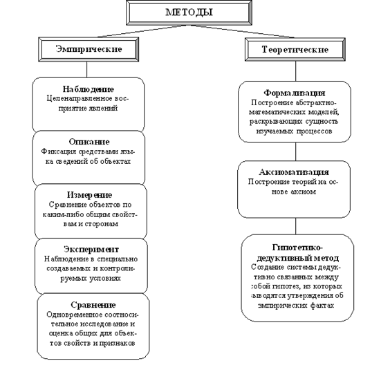 Научный метод – это совокупность приемов или операций практической или теоретической деятельности. Для анализа и оценки различных методов существует особое учение – методология. Методология – это учение о принципах построения, формах и способах научного познания.