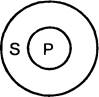 Распред елейность терминов в суждениях В логических операциях с суждениями возникает необходимость' установить, распределены или не распределены его термины — субъект и предикат. Термин считается распределенным, если он взят в полном объеме. Термин считается нераспределенным, если он взят в части объема. Рассмотрим, как распределены термины в суждениях А, Е, I, О. Суждение А (Все S суть Р). «Все студенты нашей группы (S) сдали экзамены (Р)». Субъект этого суждения («студенты нашей группы») распределен, он взят в полном объеме: речь идет обо всех студентах нашей группы. Предикат этого суждения не распределен, так как в нем мыслится только часть лиц, сдавших экзамены, совпадающая со студентами нашей группы. Распределенность терминов в суждении принято изображать с помощью круговых схем. Распределенность субъекта и предиката в общеутвердительном суждении изображена на рис. 24. Таким образом, в общеутвердительных суждениях S распределен, а Р не распределен. Однако в общеутвердительных суждениях, субъект и предикат которых имеют одинаковый объем, распределен не только субъект, но и предикат. К таким суждениям относятся общевыделяющие суждения, а также определения, подчиняющиеся правилу соразмерности (рис. 25). Суждение Е (Ни одно S не есть Р). «Ни один студент нашей группы (S) не является неуспевающим (Р)». И субъект, и предикат взяты в полном объеме. Объем одного термина полностью исключается из объема другого: ни один студент нашей группы не входит в число неуспевающих, и ни один неуспевающий не является студентом нашей группы. Следовательно, в общеотрицательных суждениях и S, и Р распределены (рис. 26).