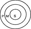 В данном примере — все, что утверждается относительно всех обвиняемых, утверждается и относительно конкретного обвиняемого (см. в круговых схемах рис. 47). Рассмотрим силлогизм: Религиозные организации (М) не выполняют государственных функций (Р) Церковь (S) — религиозная организация (М)