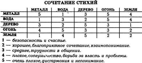 По ниже расположенной таблице можно определить точное сочетание стихий, которое поможет не только докторам, но и обыкновенным людям — например, в подборе брачного партнера.