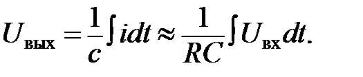 U вых = K ∫ U вх dt. Дифференциальное уравнение для этой цепи имеет вид: U вх = iR + Чем меньше U вых, тем интегрирование точнее, т. е. U вых << U вх. Для выполнения этого условия надо увеличивать τ = RC, тогда U вх ≈ iR и I ≈ U вх / R. В этом случае: