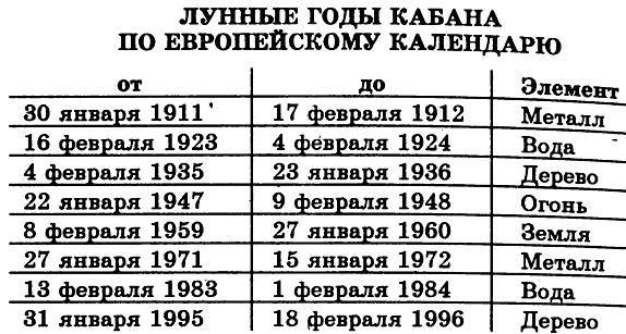ВСЕ О КАБАНЕ Кабан относится к трупе животных Инь. Это двенадцатый знак китайского гороскопа. Он управляет от 21 до 23 часов. Сезон, который приносит ему удачу, — осень. Период апогея — ноябрь. По европейскому Зодиаку Кабан соответствует знаку Скорпион. Его фиксированный элемент — Вода. Цвета, которые приносят ему счастье и благополучие, — голубой и палевый. Цветы и растения, приносящие им удачу, — лаванда, акация и орешник. Самые благоприятные страны для обитания Кабана — Пакистан, Дания, Исландия, Израиль, Малайзия, Бирма, Бразилия, Аргентина. ЗНАМЕНИТЫЕ ЛЮДИ, РОЖДЕННЫЕ В ГОД КАБАНА Фред Астор, Оливер Кромвель, Далай — Лама, Ральф Уолдоу Эмерсон, Альфред Хичкок, Саддам Хусейн, Элтон Джон, Карл Юнг, Генри Киссинджер, Джон Маккенроу, Рональд Рейган, Джон Рокфеллер, Стивен Спилберг, Макс Ротшильд, Джордж Рокфеллер, Джеральд Форд, Альберт Швейцер, Блез Паскаль, Жорж Помпиду, Отто фон Бисмарк, Франсуаза Саган, Гектор Берлиоз, Поль Сезанн, Владимир Набоков, Бернард Лоу Монтгомери, Эрве Базен, Марк Бернес, Расул Гамзатов, Тодор Живков, Мелвин Кальвин, Марсель Марсо, Альберт Осборн, Борис Покровский, Аркадий Райкин, Михаил Таль, Лаврентий Берия, Джозеф Бальзамо Калиостро, Ален Делон, Джон Эллингтон, Томас Манн, Жан Поль Марат, Проспер Мериме, Модест Мусоргский, Морис Равель, Ван Дейк, Веласкес. В восточных странах Кабан считается хозяином двора, это символ наслаждений, наивности и страсти. Трудно распознать, благородный ли он вепрь или просто Свинья — копилка. В Кабане сочетается распущенность и свирепость. Это сочетание темных и светлых начал, которые часто чередуются. Перед ним невольно чувствуешь себя безоружным и беспомощным. Его присутствие волнует, а богатство восхищает. Кабан неуловим и дик, часто он бывает одинок. Эти звери кормятся желудями и вытаптывают поля, могут быть и похотливыми свиньями, которые привыкли жить в теплом хлеву. Свиньи бывают белыми и черными, о них сложено много легенд. Везде Кабан — одиночка. В мифах друидов он обозначает духовную силу. Охота на него опасна и сопряжена со смертельным риском, потому что охотник преследует как бы воплощение духа.