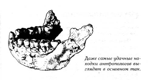 Чтобы избежать этого противоречия, э волюционисты предлагают следующее. Дело в том, заявляют они, что изменение животного (превращение его в человека) было спровоцировано изменением самой природной среды. Сначала обезьяны жили в лесу. Когда климат похолодал и леса исчезли, тут – то обезьяны встали на две ноги, распрямили спины, взялись за каменные топоры и т.д. Но согласитесь: если завтра наступит новый ледниковый период, то вряд ли, например, гориллы, станут бегать на задних лапах и шить себе шубы из шкурок пойманных зверюшек. Гориллы просто замёрзнут и умрут. Но допустим, что всё было так, как описывают эволюционисты и предположим, что изменения окружающей среды повлекли – таки за собой изменения у обезьян. Тогда давайте задумаемся: какие изменения могло вызвать в обезьяне похолодание и исчезновение тропических лесов? Обезьянам стало холодно. Резонно предположить, что они покрылись шерстью, как мамонты и шерстистые носороги. Но человек лыс, словно с самого начала предназначен для ношения шуб и кофт. Вкусных и питательных фруктов стало не хватать, и обезьяны стали охотницами. Резонно предположить, что у них появились огромные, как у тигра, клыки. Но человек «беззуб», будто с самого момента появления на Земле питался лишь коврижками и овощными пюре. Леса исчезли, и вокруг растерявшейся обезьяны залегли степи. Резонно предположить, что она научится скакать резвее антилоп. Но человек непроворен и медлителен, будто уже на заре его существования имелись эскалаторы и мощёные мостовые. Не странно ли, что проходя эволюцию, наше тело становилось всё менее приспособленным к жизни в окружающей природной среде? Тот, кто хоть немного интересовался вопросом происхождения человека, знает, что эволюционисты доказывают его происхождение от обезьяны вовсе не абстрактными рассуждениями. Перелопатив полпланеты, антропологи извлекли на свет Божий доказательства повесомее. Но так ли весомы эти доказательства на самом деле? Итак, археологи выкопали из земли кости неких существ (фрагменты черепов, костей конечностей и пр.). Надо заметить, что находки эти немногочисленны и фрагментарны. Что же позволяет утверждать, что эти давно почившие создания имеют отношение к нашему происхождению? А то, что все эти окаменелые останки костей ПРОСТО ПОХОЖИ на рёбра, пальцы, зубы нашего тела. Что могут сказать палеозоологи, которым удалось выкопать, например, копыто древней лошади? Самое большее – восстановить по найденному фрагменту строение конечности. Не больше. Попытки порассуждать на тему норова лошади, на тему, часто ли она метилась этим копытом в лоб жеребцу, любой воспримет как ни на чём не основанные фантазии. А вот у специалистов по ископаемым обезьянам эти разговоры прокатывают на «ура». Когда они объявляют человеком существо, ПОХОЖЕЕ на человека, общество проглатывает это, не поморщившись. Бывает забавно наблюдать, как полёты фантазии преподносятся нам под видом научной истины. Скажем, на картинках обезьяночеловек изображается покрытым довольно густой шерстью. Но как можно узнать, было это существо волосатым или безволосым, (или вообще негром), если единственное, что от него дошло, - это полусгнившая челюсть. И вообще, когда вы читаете, что археологи открыли останки существа, переходного от обезьяны к человеку, не думайте, пожалуйста, что учёным пов