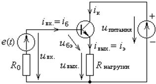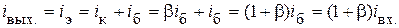 То есть, переменную составляющую напряжения входного сигнала эмиттерный повторитель передает нагрузке без изменения. По этой причине усилитель называется эмиттерным повторителем. Заметим, что при передаче и обработке аналоговых (то есть, непрерывных, не цифровых) сигналов основной интерес представляют именно их переменные составляющие. Найдем коэффициент усиления по току: