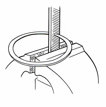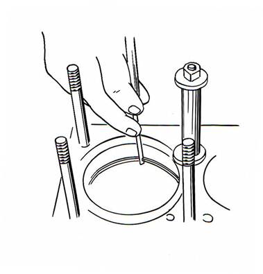 Рис. 4.19. Проверка зазора в замке поршневого кольца, вставленного в цилиндр (подбор по цилиндру)
