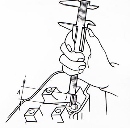 Клапан ставят во втулку необходимого размера, входящую в комплект приспособления, верхнюю часть стержня клапана зажимают с помощью мягких губок в тисках. Вращением корпуса с твердосплавными ножами относительно головки клапана добиваются необходимого качества рабочей поверхности фаски. Для шлифования рабочей фаски клапанов можно использовать настольный шлифовальный станок модели Р-186 (Россия). Стержень клапана при этом зажимают в центрирующем патроне бабки, установленной относительно плоскости шлифовального круга под углом, меньшим на 30¢ угла наклона рабочей фаски клапана. Уменьшение угла наклона рабочей фаски клапана на 30¢ по сравнению с углом наклона фаски его седла ускоряет приработку и улучшает герметичность клапана. При осмотре клапана необходимо проверять торец его головки. В случае износа торца головки на 0,2…0,3 мм ее можно прошлифовать на станке. При износах выше указанной величины клапан выбраковывается, так как может быть снят упрочняющий слой верхней части стержня, который обычно составляет 0,5…0,7 мм. Если клапан многократно притирали и шлифовали, это приводит к более глубокой его посадке в седле и изменению усилия клапанной пружины. Для проверки такого состояния необходимо определить высоту А выступания стержня клапана (рис. 4.40).