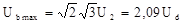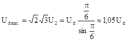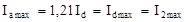 Максимальное значение тока диода Iamax=Idmax связано со средним значением тока Id так же, как связаны напряжения Udmax и Ud в уравнении (3) (нагрузка активная):