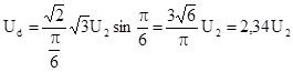 Эту величину можно определить и по среднему значению напряжения за период повторяемости ud (заштрихованный участок на рис.2, в). Как видно из формулы (13) при заданном напряжении Ud в мостовой схеме требуется вдвое меньшее напряжение U2: