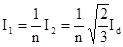 С учетом соотношений значений токов и напряжений в фазах обмоток трансформатора и в цепи выпрямленного тока: