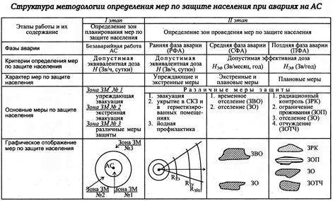 Основные мероприятиям по защите персонала АЭС и населения: - использование защищающих от ионизирующего излучения материалов с учетом их коэффициента ослабления (Косл), позволяющего определить, в какой степени уменьшится воздействие ионизирующего излучения на человека; использование коллективных средств защиты (герметизированных помещений, укрытий); - увеличение расстояния от источника ионизирующего излучения, при необходимости - эвакуация населения из зон загрязнения; - сокращение времени облучения и соблюдение правил поведения персонала, населения, детей, сельскохозяйственных работников и других контингентов в зоне возможного радиоактивного загрязнения; - проведение частичной или полной дезактивации имущества, местности и др.; - повышение морально-психологической устойчивости спасателей, персонала и населения; - организация сан.-просвет. работы, проведение занятий, выпуск памяток и др.; - установление временных и постоянных предельно допустимых доз (уровней концентрации) загрязнения радионуклидами пищевых продуктов и воды; исключение или ограничение потребления загрязненных продуктов питания и воды; - эвакуация и переселение населения; - простейшая обработка продуктов питания, поверхностно загрязненных радиоактивными веществами (обмыв, удаление поверхностного слоя и т.п.), использование незагрязненных продуктов; - использование средств индивидуальной защиты (костюмы, респираторы); - использование средств медикаментозной защиты (фармакологическая противолучевая защита) - фармакологических препаратов или рецептур для повышения радиорезистентности организма, стимуляции иммунитета и кроветворения; - санитарная обработка людей.