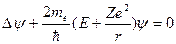 Можно показать, что уравнение (2) имеет однозначные, конечные и непрерывные решения в следующих случаях: 1) при любых положительных значениях Е; 2) при дискретных отрицательных значениях энергии, равных