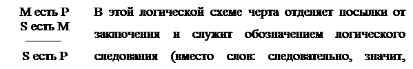 Железо электропроводно От всех других умозаключений это тип умозаключения отличается тем, что логическая связь между посылками и заключением основана здесь на структуре категорических суждений. Поэтому для анализа структуры ПКС важно учитывать те понятия (термины), которые входят в посылки и заключение. Понятия, которые входят в посылки, и заключение называют терминами силлогизма. Терминов должно быть три: меньший, больший и средний. Они определенным образом соотносятся друг с другом. Меньшим термином называется субъект заключения. Поэтому он обозначается буквой «S» (в нашем примере таким термином является «железо»). Большим термином называется предикат заключения, обозначаемый буквой (Р) (в примере – «электропроводно»). Средний термин – это понятие, которое не входит в заключение, но входит в обе посылки. Он обеспечивает логическую связь между ними, выступая их посредствующим звеном и тем самым делая возможным само заключение. Обозначается средний термин буквой «М» (в примере – «металл»).