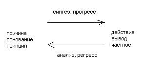 Часто словам «анализ» и «синтез» придают другое значение, именно под анализом понимают метод разложения целого на его составные части, а под синтезом.—обратный метод сложения целого и в его частей, или элементов. В этом смысле чаще всего говорят об анализе и синтезе химическом. Но для того чтобы истинный смысл понятий «анализ» и «синтез», как они употребляются в научном исследовании и изложении, был ясен, нужно считать основным значением слова «анализ» то, которое мы только что указали, именно сведение частных положений к основным принципам, а под синтезом следует понимать выведение следствий из основных принципов. Аналитический метод исследования мы употребляем тогда, когда мы ищем причины данных действий. Судья, моралист и др., которые ищут причины известных действий, употребляют метод аналитический; законодатель, политик, педагог, которые стараются предусмотреть действия известных причин, должны идти путём синтетическим. Для объяснения применения анализа возьмём следующий пример. Чтобы решить задачу вписывания правильного шестиугольника в данный круг, мы рассуждаем так. Предположим, что задача решена, и пусть АВ будет одной из сторон вписанного шестиугольника. Если мы проведём радиусы к конечным точкам сторон, то треугольник, образовавшийся таким образом, будет равноугольный (так как каждый угол равен двум третям прямого угла); следовательно, сторона вписанного правильного шестиугольника равна радиусу. Отсюда следует, что, для того чтобы вписать правильный шестиугольник в данный круг, нужно радиус нанести шесть раз на окружность. Здесь применение аналитического метода очевидно. Мы, сделав предположение, что задача решена, т. е. допустив данное частное положение, нашли то условие, тот общий принцип, при котором это частное положение возможно, т. е. из которого это положение можно вывести. Другими словами, мы данное частное положение сводим к общему принципу. Примером применения синтеза может служить теорема: «во всяком треугольнике сумма его углов равняется двум прямым углам». Для доказательства этой теоремы мы должны принять следующих два общих положения: «внутренние накрест лежащие углы равны» и «всякая пара смежных углов равна двум прямым». Из этих общих положений мы выводим искомое положение. Отношение анализа и синтеза к индукции и дедукции. Но, спрашивается, в каком отношении находятся методы аналитический и синтетический к методам индуктивному и дедуктивному? Отношение между ними таково, что анализ соответствует индукции, а синтез соответствует дедукции. Что анализ соответствует индукции, легко пояснить следующим образом. Индукция имеет целью открытие законов, общих принципов. В процессе индукции мы идём от частных положений к общим принципам. Поэтому в процессе индукции мы совершаем регрессивный путь. Из этого следует, что индукция соответствует анализу. Наоборот, дедукция выводит из общих принципов частные положения, те или иные следствия. Из этого становится ясным родство дедуктивного метода с синтетическим. Синтетический метод состоит в том, что мы предполагаем известные принципы открытыми и доказанными; из этих общих принципов мы выводим следствия.