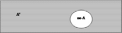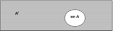 Образование дополнения (отрицание). Дополнением к классу А называется класс не-А (А’), который при сложении с Аобразует универсальную область. Эта область представляет собой универсальный класс и обозначается знаком 1. Чтобы образовать дополнение не-А (или А’), нужно класс А исключить из универсального класса: 1- А = А’. Образование дополнения состоит в образовании нового множества путем исключения данного множества из универсального класса, в который оно входит (рис. 7).