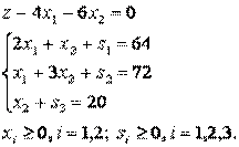 Запишем задачу в канонической форме, т.е. ограничения-неравенства перепишем в виде равенств, добавляя балансовые переменные:
