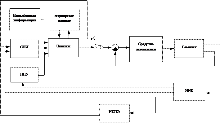 Главной причиной отсутствия в наше время достаточно надёжных и эффективных методов синтеза эргатических систем и прогнозирования их работы в штатных, нештатных и аварийных ситуациях является то, что, несмотря на ощутимые успехи учёных и специалистов в области кибернетики, психологии, эргономики, теории и практики управления, человек, как звено в многофункциональных контурах управления является ещё слишком "чёрным ящиком", т. е. его характеристики во многом не известны, слишком нестационарны и пока ещё не могут быть представлены в виде, позволяющем осуществить синтез контура управления на основе хорошо разработанных методов теории управления или кибернетики. При решении подобных задач приходится сталкиваться с обширным спектром свойств человека как управляющего звена системы. Небольшая по сравнению с современными БЭВМ скорость восприятия и обработки информации, низкая пропускная способность динамической памяти человека, слабая помехоустойчивость, ограниченная скорость реакции могут быть компенсированы способностью профессионально подготовленного оператора работать в образном и понятийном пространстве путём содержания в "горячем резерве" открытой, постоянно пополняющейся опытом и знаниями концептуальной модели объекта управления и условий его функционирования. Эта модель (образ полёта), реализующаяся на стыке иконической и динамической памяти, позволяет осуществлять достаточно быструю, качественную, "грубую" обработку процессов, описываемых сложнейшими дифференциальными уравнениями, и на её основе избирательно восстанавливать недостающую информацию, а также использовать информационную избыточность в интересах надёжности, учитывать вероятность событий и прогнозировать их развитие. Фактически процесс управления сложными объектами, в частности, самолётом — есть процесс построения концептуальной модели, на которой в значительной мере базируется не только мастерство и опыт, но интуиция, играющая немаловажную роль при остром дефиците времени. По имеющимся данным увеличение в последнее время числа катастрофических случаев по причине потери экипажем образа полёта свидетельствует о необходимости кардинальных изменений в подходах к отбору, подготовке и научному обеспечению лётного состава, а также к способам включения человека в информационно-управляющее поле. На рис. II.1 представлен контур управления самолётом и составляющие информационно-управляющего поля, назначение которых: выдавать информацию, способствующую своим содержанием и формой представления выработке у экипажа наиболее полного и непротиворечивого образа полёта, наиболее чувствительного к возможным отклонениям от нормы и возникновению нештатных ситуаций. Это: — система отображения информации на электронных индикаторах и электро-механических приборах (СОИ), поставляемых не только бортовым информационно-измерительным комплексом (ИИК), который вырабатывает необходимый текущий вектор состояния самолёта на основе комплексной обработки сигналов первичных датчиков, но и представляет на индикаторах в образном виде вырабатываемую интеллектуальной системой "Помощник экипажа" интегральную информацию о прогнозируемых конечном состоянии, траектории полёта, тенденции развития нештатных ситуаций и рекомендации экипажу о необходимы
