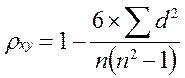 Коэффициент корреляции методом рангов (Спирмена) вычисляется по формуле:
