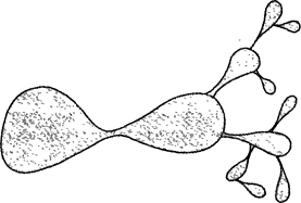 И тогда крошечный участок Вселенной может внезапно рас- шириться и «образовать почку», пустить побег «дочерней» все- ленной, от которой, в свою очередь, может отпочковаться новая дочерняя вселенная; при этом процесс «почкования» продолжается беспрерывно. Представьте, что вы пускаете мыльные пузыри. Если дуть достаточно сильно, то можно увидеть, как некоторые из них делятся, образуя новые, «дочерние» пузыри. Подобным образом одни вселенные могут постоянно давать начало другим вселенным. Согласно этому сценарию, Большие Взрывы происходили все время, происходят и сейчас. Если это верно, то, возможно, мы плаваем в море таких вселенных, словно пузырек, покачивающийся в океане среди других пузырьков. По сути, более подходящим словом будет не «Вселенная» (Универсум), а «Мультивселенная» (Мультиверсум).