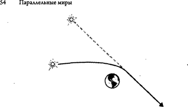 В конце концов в 1919 году, когда Европа, залечивая раны, пыта- лась выбраться из-под руин Первой мировой войны, по всему миру были разосланы команды ученых-астрономов для проверки новой теории Эйнштейна. Эйнштейн предположил, что искривление про- странства-времени Солнцем будет достаточным для искривления звездного света, проходящего вблизи Солнца. Величину искривле- ния звездного света можно было точно подсчитать, подобно тому как можно вычислить, насколько стекло искривляет свет. Но поскольку