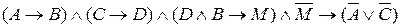 2) 3) 4) множество дизъюнктов: S ={(А Ú C), (B Ú C), Построим резолютивный вывод, заканчивающийся 0. 1) 2) Так доказано, что если срабатывает клапан С, то не срабатывает клапан А. 2. Доказать истинность заключения