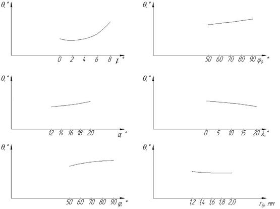 Из них видно, что на геометрические показатели срезаемого слоя а и b влияют в основном глубина резания, подача, угол