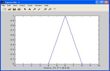 Хід роботи: До найбільш простим ФП можна віднести трикутну і трапецієподібну. Опис трикутної функції приналежності: y = trimf(x, [a b c]), де вектор x - базове безліч, на якому визначається ФП. Величини і задають основу трикутника, b - його вершину.