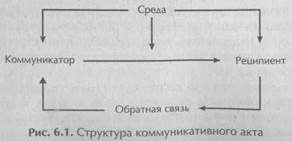 В процессе своей трудовой или учебной деятельности люди вступают во взаимодействие, которое является неотъемлемым атрибутом любого производственного или учебного процесса. Результат взаимодействия людей проявляется в их взаимоотношениях друг с другом, в социально-психологическом климате, в удовлетворенности потребностей в общении, в привлекательности деятельности и культуры организации. Именно коммуникация формирует целостность организации. ► Коммуникация в организации — это информационные взаимодействия, в которые люди вступают и которые поддерживают при выполнении своих функциональных обязанностей или должностных функций. К организациям в данном случае относятся школы, вузы, различные коммерческие и государственные предприятия, в том числе управленческие и политические структуры. В психологии принято называть человека, передающего информацию (сообщение), оказывающего коммуникативное воздействие, коммуникатором, а того, кто воспринимает информацию или на кого оказывается воздействие, — реципиентом. (Их взаимодействие представлено на рис. 6.1.) Исследования показывают, что от 50 до 90% рабочего времени менеджера приходится на коммуникацию. При этом 85% японских, 73% американских и 63% английских менеджеров считают коммуникативную некомпетентность основным препятствием на пути повышения эффективности деятельности организации. Коммуникация людей в организациях — это их взаимодействие друг с другом преимущественно с целью: ♦ получения или сообщения информации, необходимой для качественного выполнения функциональных и должностных обязанностей;