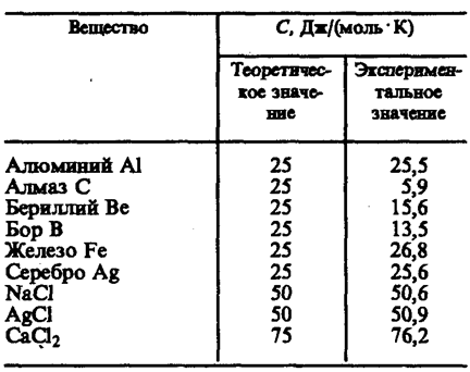 Расхождение опытных и теоретических значений теплоемкостей, вычисленных на основе классической теории, объяснили, исходя из квантовой теории теплоемкостей, А. Эйнштейн и П. Дебай.