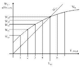 Таке значення втрат знаходиться на межі допустимого, тому треба приймати рішення про реконструкцію термоізоляції. Оцінювати можливість виводу з роботи енергоємного обладнання необхідно на підставі порівняння витрат електроенергії на запуск (доведення до робочої температури) обладнання після перерви з витратами за такий же період в режимі неробочого ходу печі. Очевидно, що чим триваліша перерва (вимкнення печі) тим більше енергії буде потрібно для досягнення робочих параметрів та й збільшиться власне час на досягнення потрібної температури. Якщо на графіку зобразити залежність кількості енергії Наведені залежності треба визначати вимірюванням параметрів для конкретної печі.