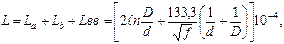 где D-диаметр внешнего проводника коаксиальной пары, мм d-диаметр внутреннего проводника коаксиальной пары, мм