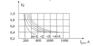 Рис 4.6 Значение коэффициентов Кm и Ki Напряжение помех в конце телефонной цепи, обусловленное магнитным влиянием симметричной трехфазной ВЛ при ее нормальной работе, определяется следующей формулой: