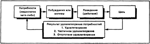 ПЕРВИЧНЫЕ ПОТРЕБНОСТИ являются по своей природе физиологическими и, как правило, врожденными. Примерами могут служить потребности в пище, воде, потребности дышать, спать и сексуальные потребности. ВТОРИЧНЫЕ ПОТРЕБНОСТИ по природе своей психологические. Например, потребности в успехе, уважении, привязанности, власти и потребность в принадлежности кому или чему-либо. Первичные потребности заложены генетически, а вторичные обычно осознаются с опытом. Поскольку люди имеют различный приобретенный опыт, вторичные потребности людей различаются в большей степени, чем первичные. ПОТРЕБНОСТИ И МОТИВАЦИОННОЕ ПОВЕДЕНИЕ. Потребности невозможно непосредственно наблюдать или измерять. Об их существовании можно судить лишь по поведению людей. Психологи, наблюдая за людьми, определили, что потребности служат мотивом к действию. Когда потребность ощущается человеком, она пробуждаетв нем состояние устремленности. Побуждение — это ощущение недостатка в чем-либо, имеющее определенную направленность. Оно является поведенческим проявлением потребности и сконцентрировано на достижении цели. Цели в этом смысле — это нечто, что осознается как средство удовлетворения потребности. Когда человек достигает такой цели, его потребность оказывается удовлетворенной, частично удовлетворенной или неудовлетворенной. Например, если вы ощущаете потребность в сложной работе, это может побудить вас попытаться достичь цели в виде получения места, обеспечивающего ее. Получив такое место, вы можете обнаружить, что работа там на самом деле не такая сложная, как вы предполагали. Это может заставить вас работать с меньшим усердием или искать другое место, на котором ваша потребность будет удовлетворена. На рис. 13.1. показан такой тип поведения. Степень удовлетворения, полученная при достижении поставленной цели, влияет на поведение человека в сходных обстоятельствах в будущем. В общем случае люди стремятся повторить то поведение, которое ассоциируется у них с удовлетворением потребности и избегать такого, которое ассоциируется с недостаточным удовлетворением. Этот факт известен как ЗАКОН РЕЗУЛЬТАТА. Пол Лоуренс и Джей Лорш отмечают: «В процессе того, как человек старается разрешить свои проблемы, конкретные типы повелении оказываются каким-то образом вознагражденными. При этом люди запоминают, каким образом им удалось справиться с той или иной проблемой. Следовательно, когда в следующий раз человек встречается с какой-то проблемой, он пытается разрешить ее уже опробованным способом. По прошествии времени, так как некоторые из моделей поведения оказываются последовательно вознагражденными, человек осознает, что полагаться надо именно на них».