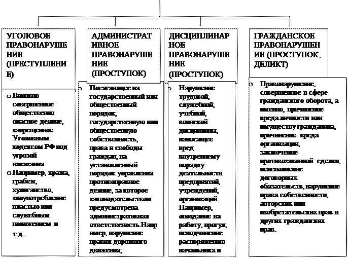 Правонарушение - противоправное виновное деяние лица, носящее общественно опасный (вредный) характер. Вина - психическое отношение лица к совершенному им проти-воправному деянию. Вина выступает в форме умысла или неосторож-ности. Умысел предполагает, что лицо, совершившее правонарушение, предвидело общественно опасный характер своих действий, желало или сознательно допустило их наступление. Неосторожность выражается в том, что лицо предвидело наступление общественно опасных последствий своих действий, но легкомысленно надеялось их предотвратить, либо не предвидело возможности наступления таких последствий, хотя должно было предвидеть. Состав правонарушения - совокупность признаков, при наличии которых деяние считается правонарушением. Состав правонарушения - основание юридической ответственности.