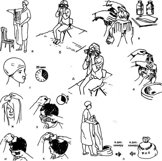 Если педикулез не выявлен, медицинская сестра помогает пациенту раздеться, затем заполняет в двух экземплярах «Приемную квитанцию» (форма № 1-73), где указывает перечень вещей, их краткую характеристику. Один экземпляр квитанции вкладывает в «Медицинскую карту стационарного больного», второй — прикрепляет к вещам, отправляемым в камеру хранения. Во многих лечебных учреждениях разрешают пребывание пациента в отделении в собственной одежде. Затем пациент в сопровождении сестры переходит в ванную, где должна быть принудительная вентиляция и постоянная температура (около 25°С), на полу —