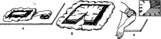 Рис. 6.9. Подготовка к постановке компресса (а, б); постановка компресса (в).