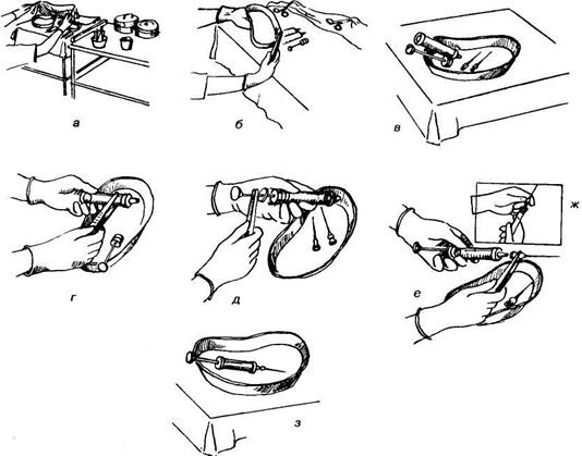 Рис. 9.27. Разведение порошка и набор лекарственного средства.